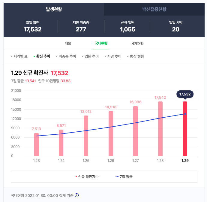 최근 코로나 신규 확진자가 17,000명이 넘어가면서, 오미크론 변이 확진자가 폭증하고 있는 상황입니다.